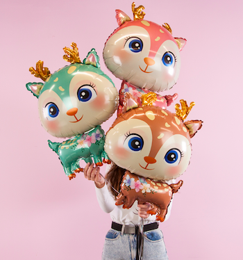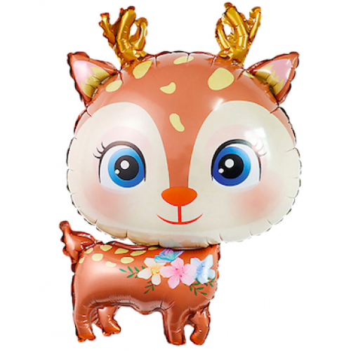 Шар с гелием, фольгированная фигура "Цветочный оленёнок, коричневый"