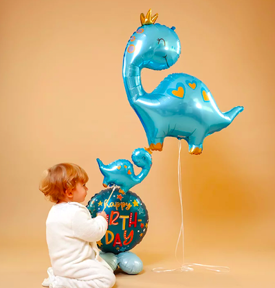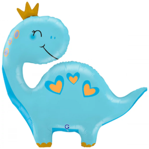 Шар с гелием, фольгированная фигура "Динозаврик голубой в короне"