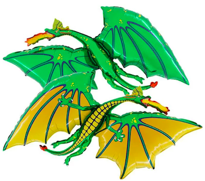 Шар с гелием, фольгированная фигура "Дракон зелёный"