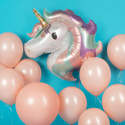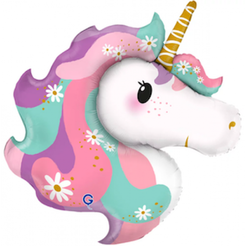 Шар с гелием, фольгированная фигура "Голова, единорог цветочный, сатин"