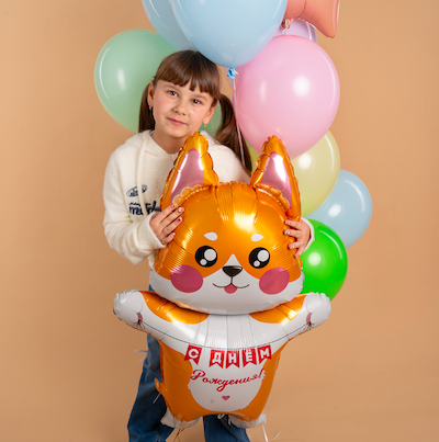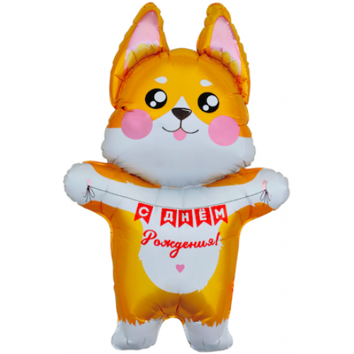 Шар с гелием, фольгированная фигура "Корги. С днём рождения!"