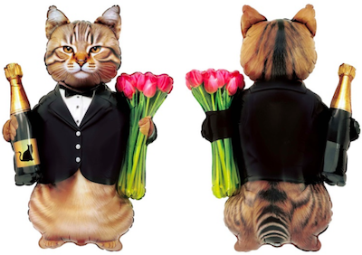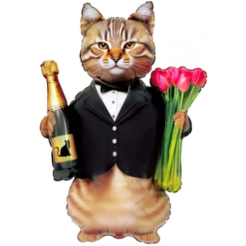 Шар с гелием, фольгированная фигура "Кот джентельмен с шампанским и тюльпанами"
