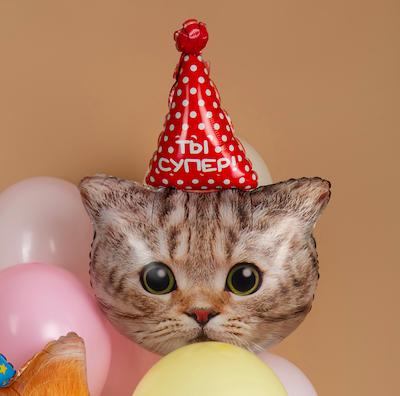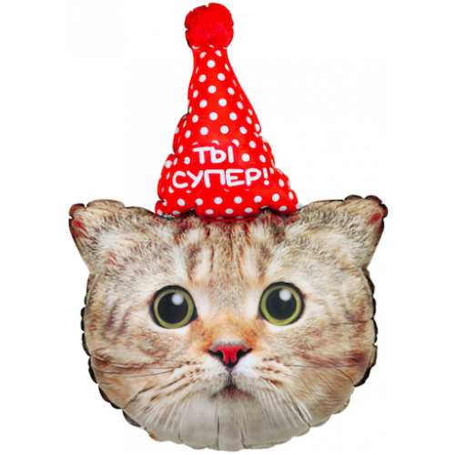Шар с гелием, фольгированная фигура "Кот в колпаке, Ты супер!"
