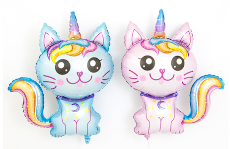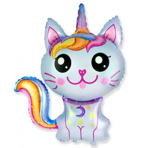 Шар с гелием, фольгированная фигура "Котёнок единорог, голубой