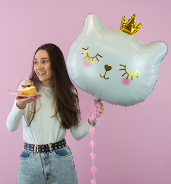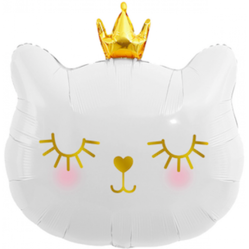 Шар с гелием, фольгированная фигура "Котёнок принцесса, белый"