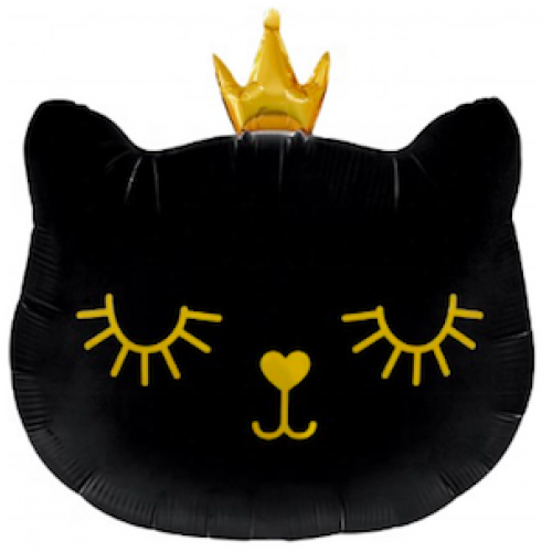 Шар с гелием, фольгированная фигура "Котёнок принцесса, чёрный!