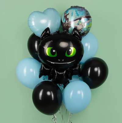 Шар с гелием, фольгированная фигура "Маленький дракон, чёрный"
