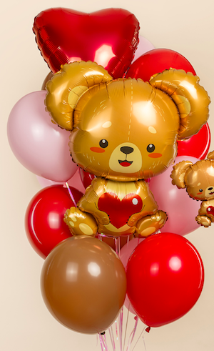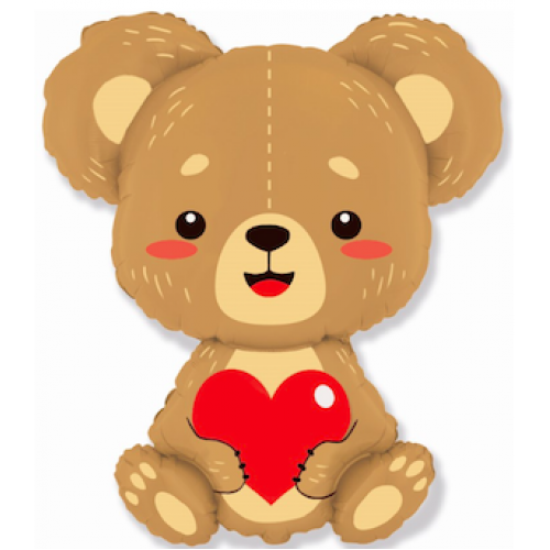 Шар с гелием, фольгированная фигура "Плюшевый мишка с сердцем"