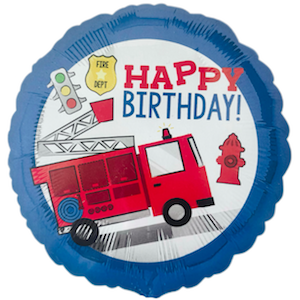 Шар с гелием, фольгированный круг "Happy birthday, пожарная машина"