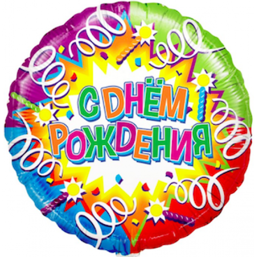 Шар с гелием, фольгированный круг "С днём рождения! Взрыв конфетти"