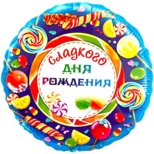 Шар с гелием, фольгированный круг "Сладкого дня рождения"