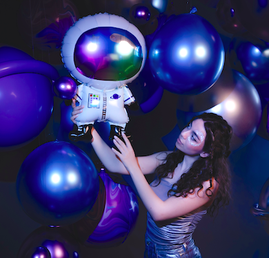 Шар с гелием, фольгированная фигура "Космонавт, градиент"