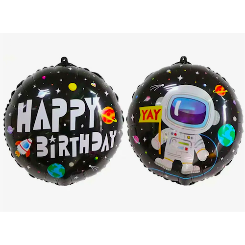 Шар с гелием, фольгированный круг "Космонавт Happy birthday"