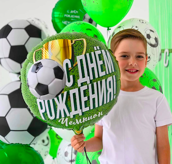 Шар с гелием, фольгированный круг "Сднём рождения, чемпион!"